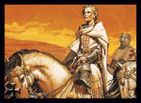 Moderne fremstilling af den kun 16. årige kong Balduin d. 4. før slaget ved Montgisard 1177.
